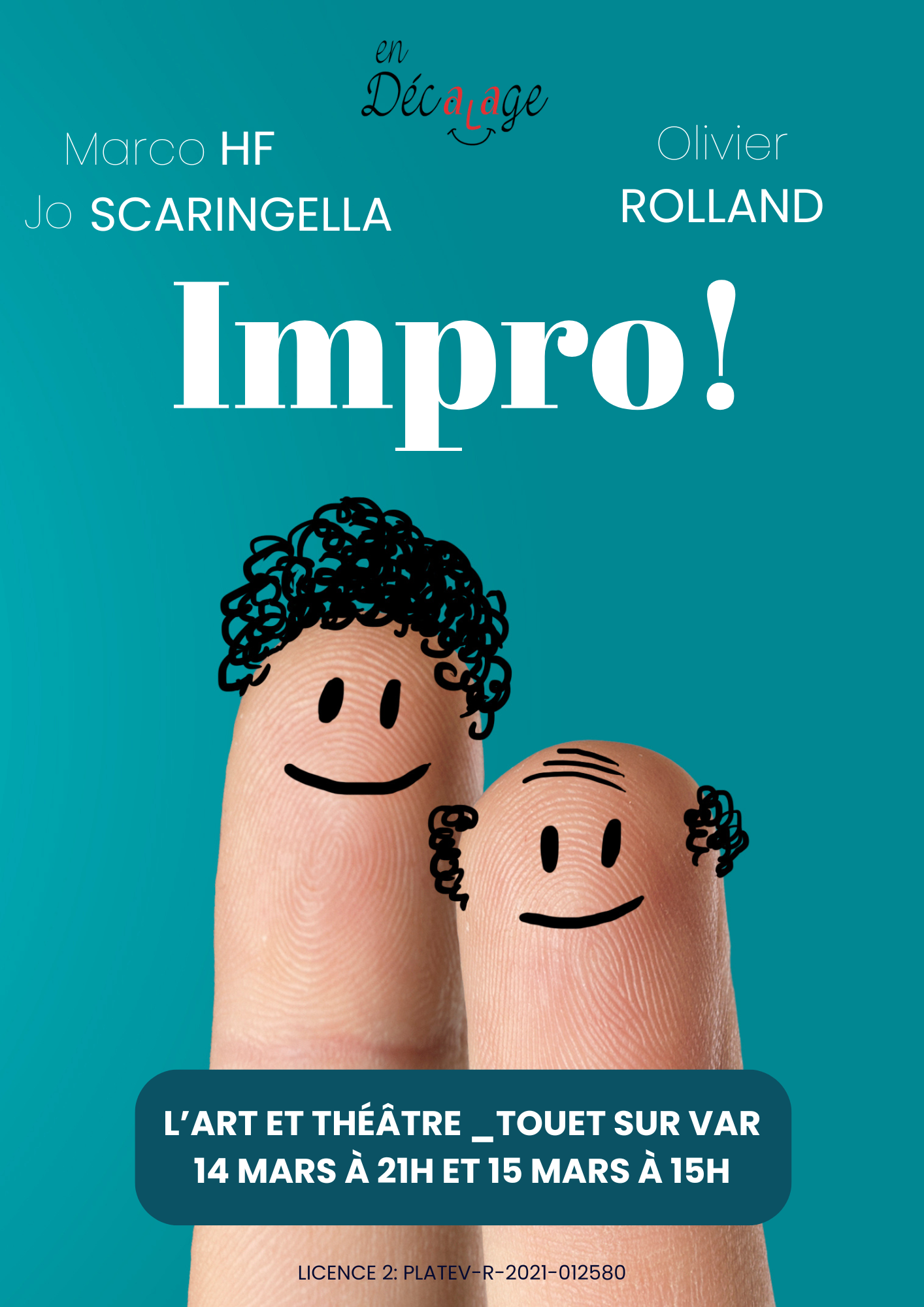 L’ART & THEATRE est heureux de vous présenter le spectacle « IMPRO ! » de la Cie En Décalage, où Olivier Rolland aura le plaisir de partager la scène avec des improvisateurs de talents.