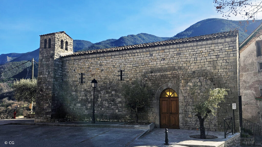 Les murs sont construits en pierres d’origine locale qui sont parfaitement litées. La nef unique rectangulaire est prolongée par une abside en cul de four.